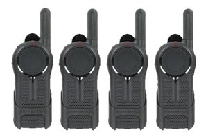 -. Binding : Electronics -. Brand : Motorola -. EAN : 0738613621328 -. Feature : 4 Pack of Motorola DLR1020 radios sold for $836.00 by All Charged Up / Each of our radios comes complete with single-unit charger, 14 hour lithium ion battery, swivel belt holster, 1-year warranty through us, free shipping via UPS ground, and guaranteed support from our team of radio experts / Set to 900MHz digital frequencies that do not require an FCC license. Digital radios are not compatible with existing analog radios. If these are your first radios, they are a great choice, but cannot be matched up to non-DLR radios. Digital gives you the best possible audio quality. / 1-watt (covers up to 300,000 square feet or 20 floors), 2 channels (communication groups). / This is a new model of Motorola two-way radio and features cutting-edge digital technology. Extremely small and works well for a variety of small footprint businesses. For questions, give us a call or shoot us an email. -. Label : Motorola Solutions -. Manufacturer : Motorola Solutions -. PackageQuantity : 1 -. ProductGroup : CE -. ProductTypeName : TWO_WAY_RADIO -. Publisher : Motorola Solutions -. Studio : Motorola Solutions -. Title : 4 Pack of Motorola DLR1020 Two Way Radio Walkie Talkies -. UPC : 738613621328