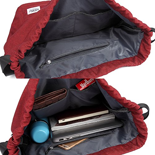 | KAUKKO Canvas Drawstring Backpack Rucksack Shoulder Bags Gym Bag |