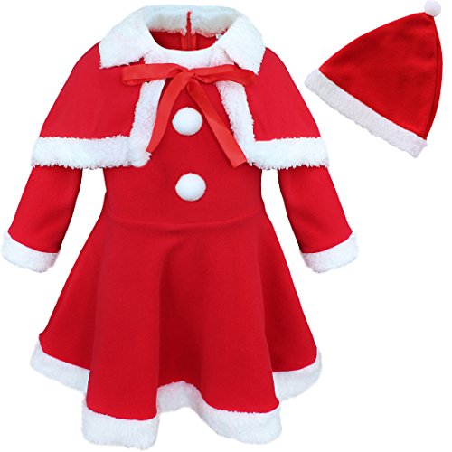 -. Brand : iiniim -. Color : Red -. Department : baby-girls -. Feature : Material: Cotton blend, Fleece / Dress Length: Knee-Length / Lovely girls red christmas santa claus dress paired with shawl and santa hat, festive and cute. / Perfect for christmas, festivals, party or some other special occasions. -. ProductGroup : Apparel -. ProductTypeName : BABY_COSTUME -. Title : iiniim Baby Girls Christmas Santa Claus Costume Dress + Shawl + HAT Outfit Set
