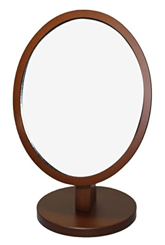 Adjustable Classic Dark Brown Wooden Frame Vanity Bathroom Makeup Mirror - Fixed Stand, Oval | Valentine's Day For Her