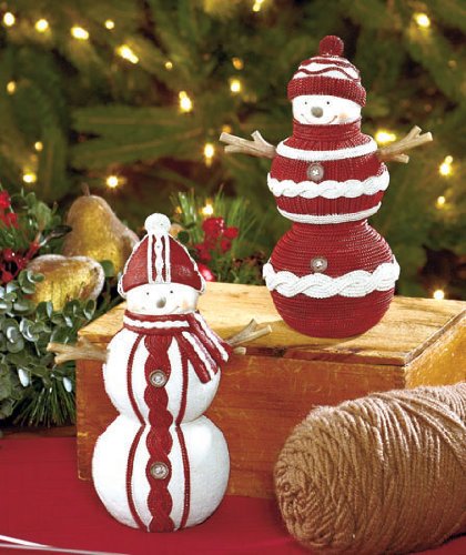 Set of 2 Homespun Holiday Snowmen Decorations