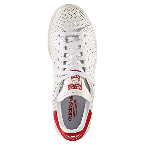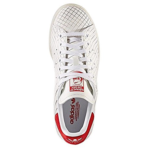Binding : Shoes Product Description Named for two-time Grand Slam champion and one of the all-time tennis greats, the Stan Smith sneaker became an icon of global sport style for its pure, minimalist design. Perforated 3-Stripes and a colour-pop heel tab give these shoes an unmistakable signature look. This women's version adds some flavor to the classic lines with an Italian sliced leather upper that has a dynamic cross-hatch effect. A nubuck heel tab enhances the premium feel. Made with an authentic rubber cupsole. 0