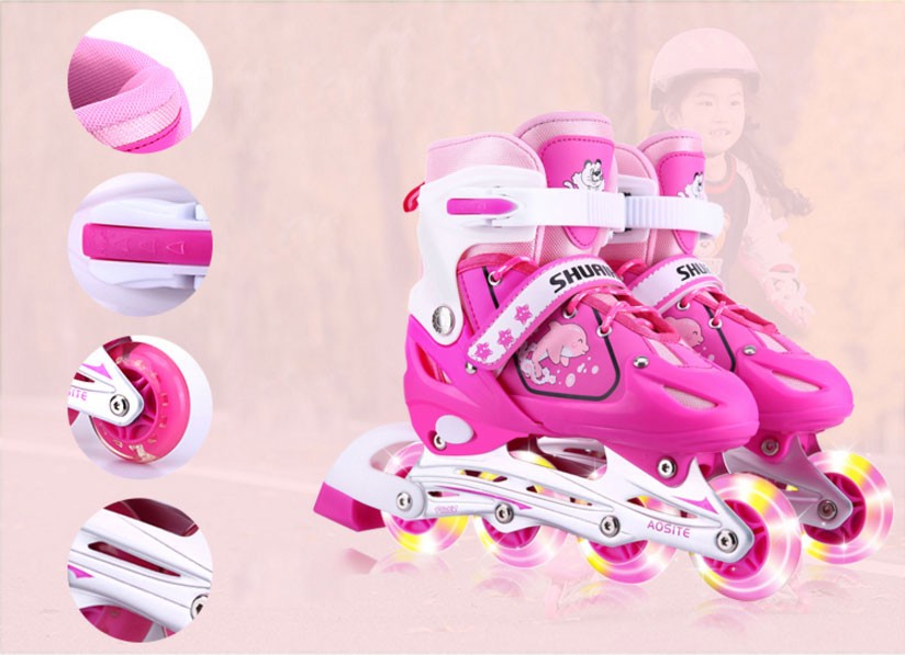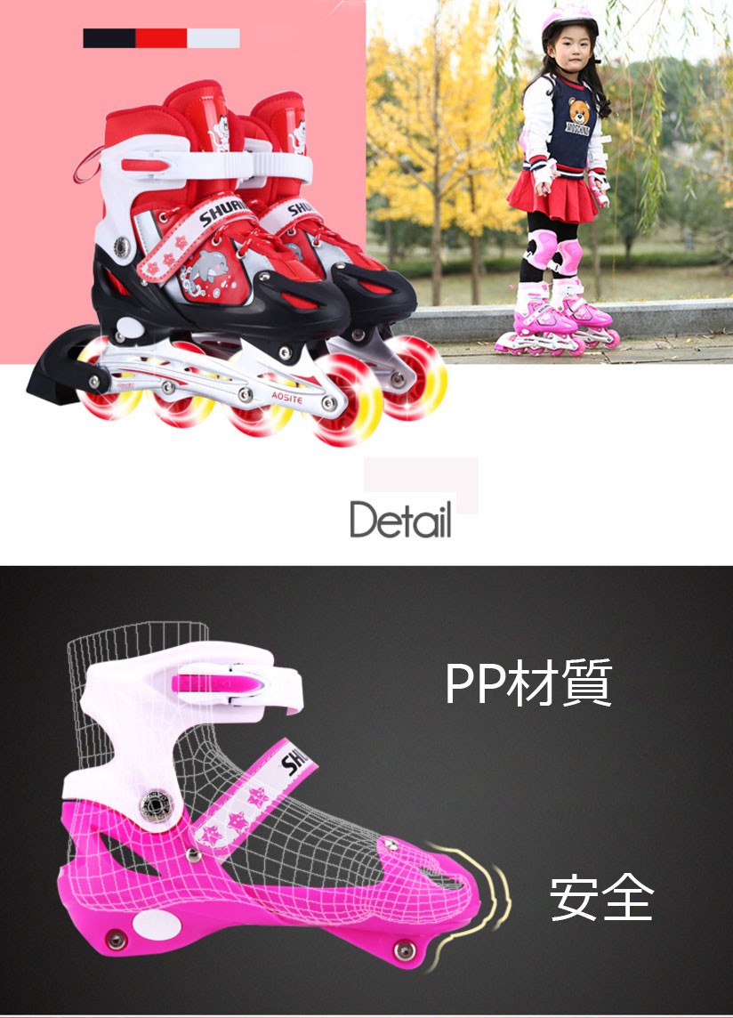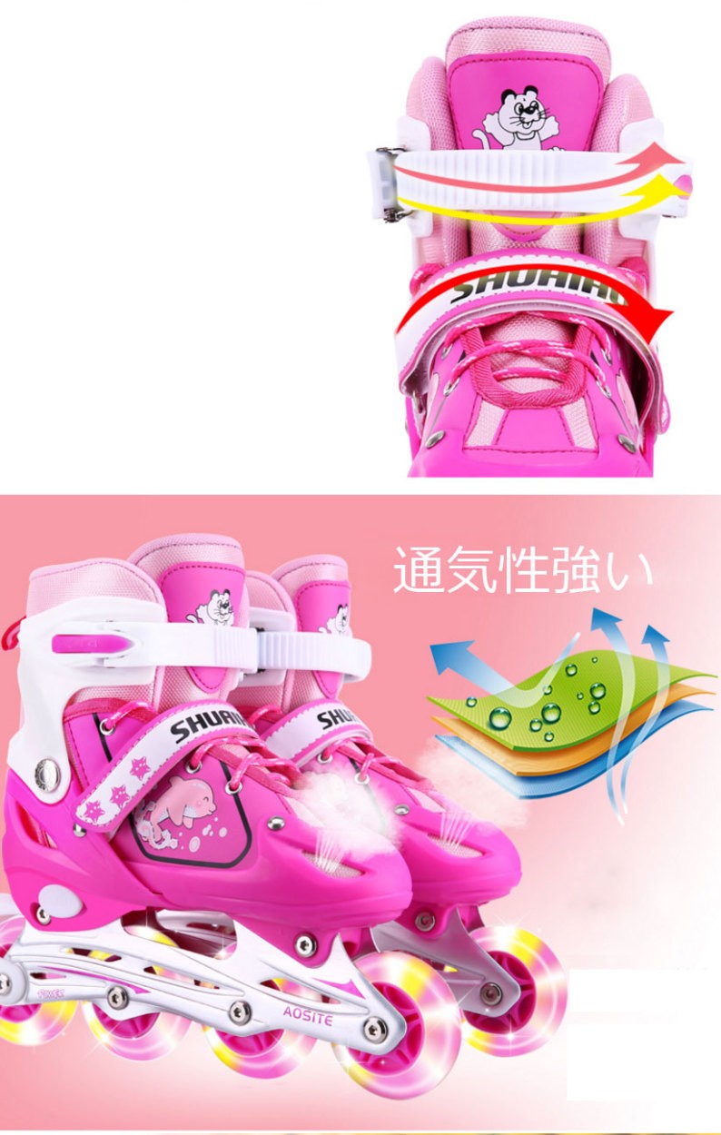 主に:インライン、クワッド、ローラーシューズ使い方:半おもちゃ、スピード、アグレッシブ、スラローム、フィットネス、ダンス・フィギュア練達度:補助輪付き、入門?初心者向け、訓練用、プロ向け年齢による:子供用、子供/ジュニア用、大人用、プロ国際標準の片足ワンブレーキを右足にかけると、バランスよく止まれます。付属の専用ツールにより、かかとブレーキは、左右どちらでも設置可能です。タイヤ(ウィール)はポリウレタンを使用し、しっかりと路面を蹴る事が出来ます。誕生日、子供の日などのプレゼントとしてビッタリです♪【サイズ(cm)】S(18.5-20.5) ←3-6歳向けM(21.23.5) ←6-11歳向けL(24-25.5) ←11-15歳向け※プッシュボタンでサイズの調節が簡単です。【カラー】A-ピンク、B-ブルー【材質】PP・PVC・PU・PE・TPR・ナイロン【中国製】キーワード:インラインスケート クワッドスケート ローラーブレード ローラースケート スケート フィットネス 子供用 キッズ/ジュニア用 インライン クワッド 入門向け 初心者向け