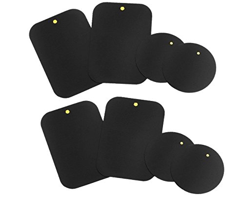 Metal Plate, (8 Pack) with Adhesive for Magnetic Cradle-less Mount - 4 Rectangle and 4 Round (Compatible with WizGear mounts) (8 Pack - Black)