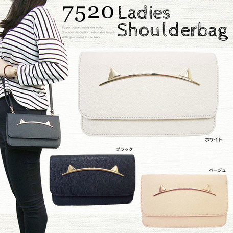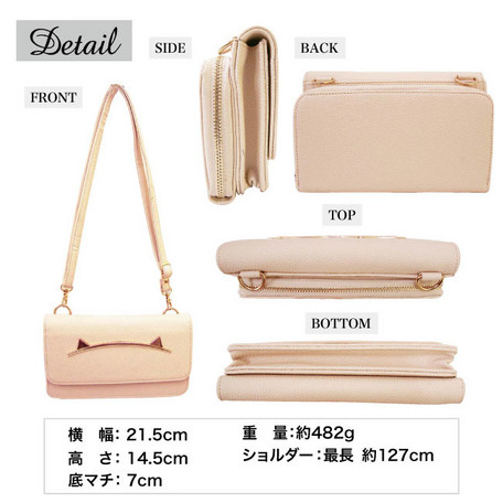 前面かぶせにはネコ耳モチーフの金具つき。
