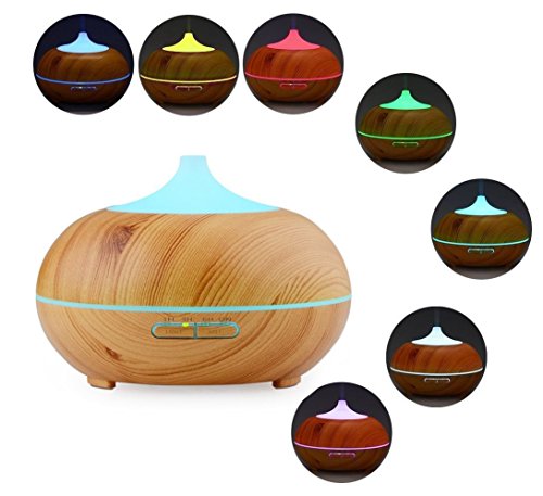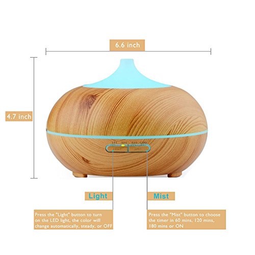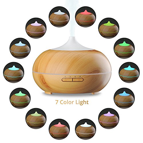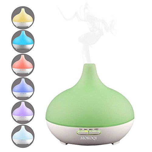 300ML Essential Oil Diffuser, MOKOQI Wood Grain Aromatherapy Ultrasonic Cool Mist Whisper-Quiet Humidifier with Color LED Light Changing and 4 Timer Settings,Auto Shut-off,BPA Free for Spa,Home,Office