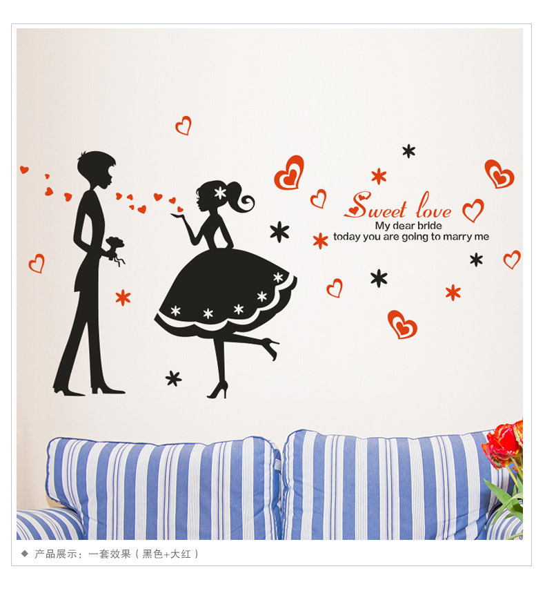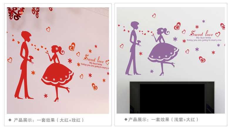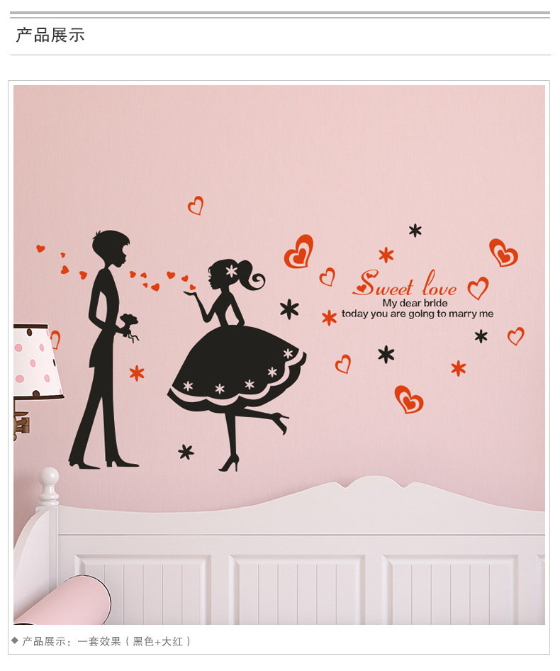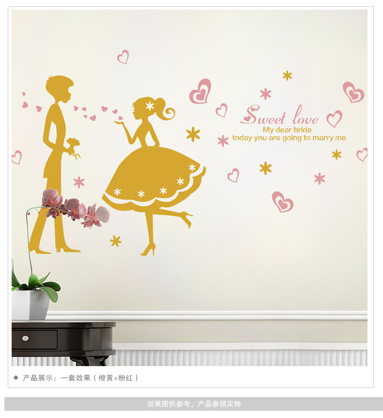 甜蜜婚礼爱情浪漫温馨房间装饰品婚庆公司婚礼布置玻璃墙贴画自粘