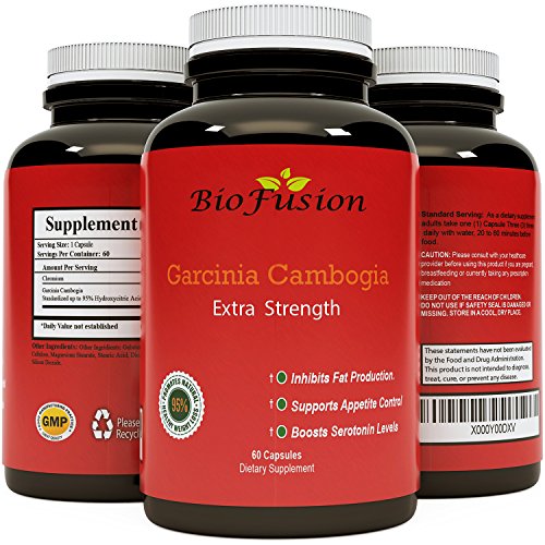 -. Feature : MOST ADVANCED HCA EXTRACT - Fast acting Pure Garcinia Cambogia weight loss pills - Strong appetite suppressant - Potent Premium Capsules - Best Belly Fat Absorber - 60 Capsules - Biofusion / 100% MONEY BACK GUARANTEE - If you are not completely satisfied with Biofusion's premium capsules we will refund you 100% of your money, no questions asked. WHAT DO YOU HAVE TO LOSE ORDER NOW! / PREMIUM NATURAL EXTRACT - We welcome you to try Biofusion's best weight loss supplement on the market. Our Garcinia Cambogia is made from the most pure extracts giving you a product we are proud to offer. Garcinia Cambogia is a fruit that contains HCA - a natural appetite suppressant. Hydroxycitric Acid is also known to increase levels of serotonin in your body; a signal that influences mood, social behavior, and appetite. A happier, healthier life starts here. Garcinia Cambogia is today's top appetite suppressant and Biofusion's capsules are the best in its class. / LOSE WEIGHT FAST - Achieve GREAT results, FAST! Our Garcinia Cambogia contains 95% HCA which helps eliminate cravings naturally. Our inexpensive, dependable weight loss supplement is the best in its class. Potent Hydroxycitric Acid capsules works great for both men and women. Stop overeating by naturally increasing serotonin levels with our thermogenic formula which produces heat through metabolic stimulation. This fast acting pure Garcinia Cambogia was made for you! It works great with all diets including Weight Watchers - Slim-fast - South Beach diet - and more! Just watch the fat melt off ur belly! Our Garcinia Cambogia works well with cleanse and green coffee bean to help you achieve your best body today! Get ready for great results from our #1 best weight loss supplement capsules of pure HCA extract today! / MANUFACTURED IN A GMP CERTIFIED FACILITY - We promise that you will be nothing less than 100% satisfied with our premium HCA pure Garcinia Cambogia. Biofusion's is one of the largest manufacturers of naturally sourced supplements in the USA. Highly dependable, our FDA-evaluated facilities strictly adhere to GMP guidelines and standards. We are a company that is dedicated to providing health and wellness and our products use all-natural ingredients. We do not support the use of flow agents, binders, and other harmful additives that may cause side effects. Buy now knowing that you will receive the up-most quality product our company is proud to offer.