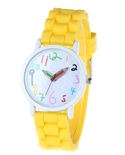 -. Feature : Large dial, clear shilly numbers, pencil pointer, candy-colored strap / Glass mirror, screw-down crown, stainless steel clasp / Mutiple corlors for your choice, fashionable sports watch for kid's school gift / Electric quartz movement / Life water resistant: withstands rain and splashes of water, but not wear it to take shower, swim, dive, etc