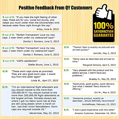 ★A 100% SATISFACTION MANUFACTURER WARRANTY: If for whatever reason, you don't absolutely love your swimming caps, just return it. We'll refund every penny (or replace it, if there is a problem).