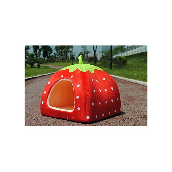 원본상품명:【ノ?ブランド品】全5カラ? 小型犬 猫 小動物 兼用 いちご型 ふかふかハウス ベッド ソファ TWOWAY