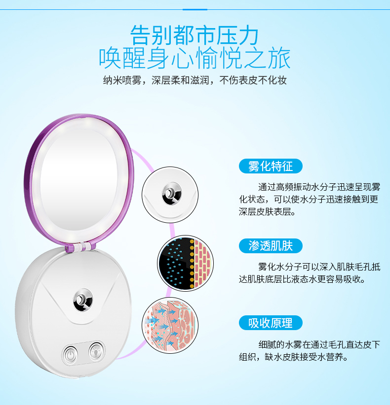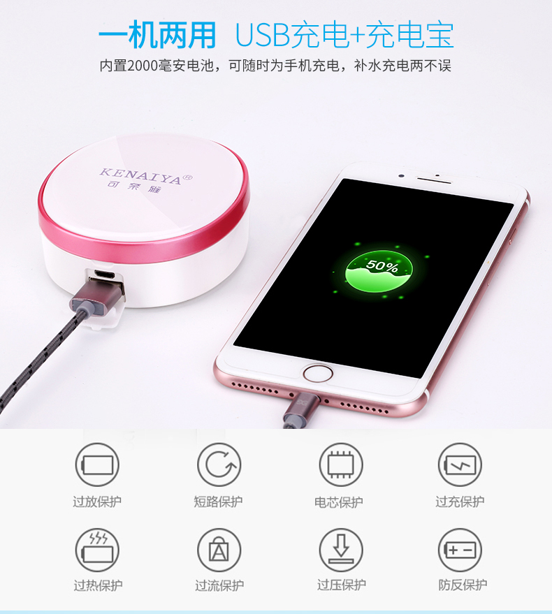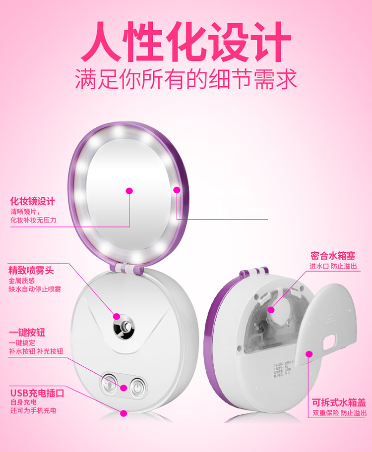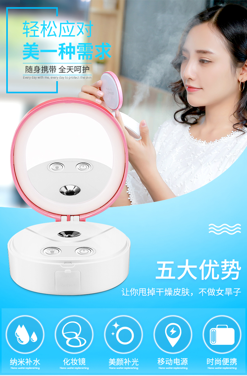 一款多功能补水仪 u0026nbsp;一机四用(补水仪+充电宝+镜子+美颜灯)