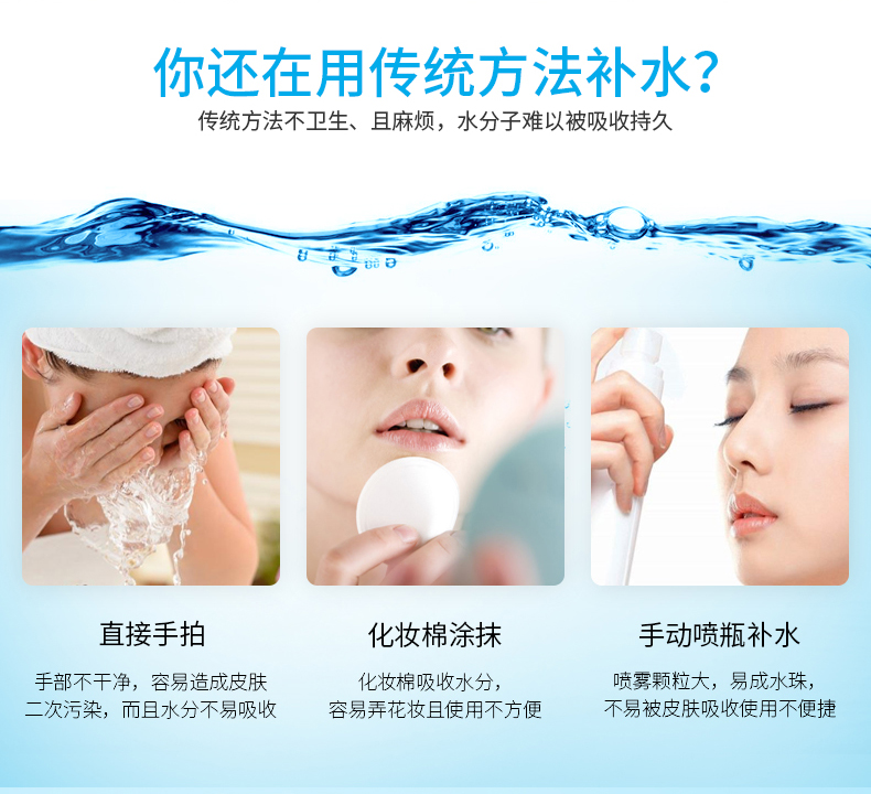 注意:其他如精华液,化妆水等有浓度很高的水容易堵住喷雾口,不可以直接用一定要加水稀释。介意的慎拍!!
