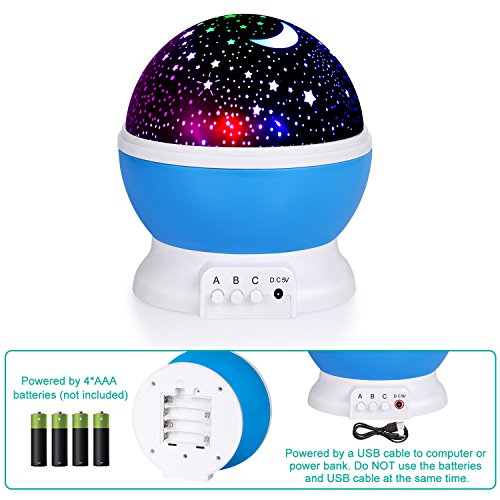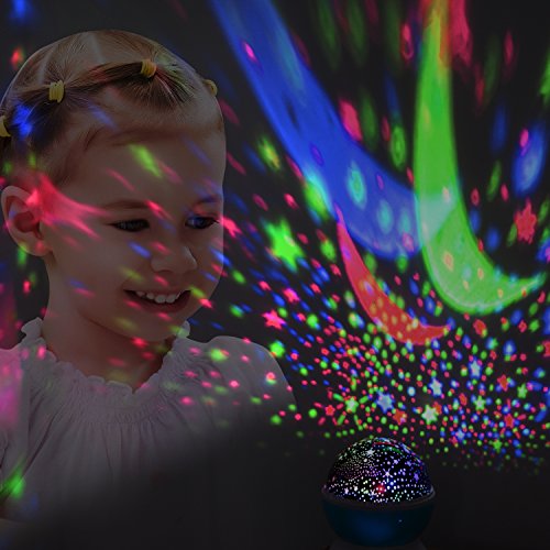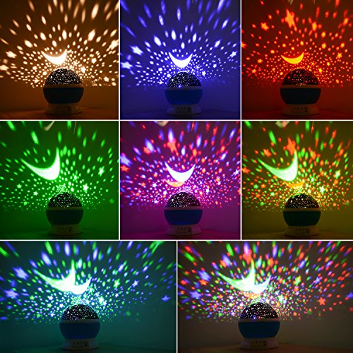 - MORE THAN ONE: There are popular Star Sky Moon Cover +Cosmos Cover Projector lamp, they can help you put the universe back home, give you a piece of the sky changes color. The baby night light not only gives your kids universal Astronomical Science and enhances the capacity of good assistants hands, but also gives your couple to create a romantic surprise.