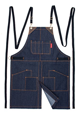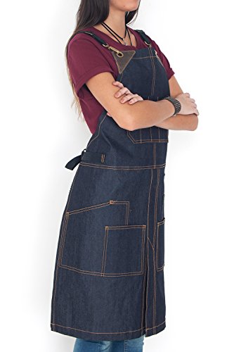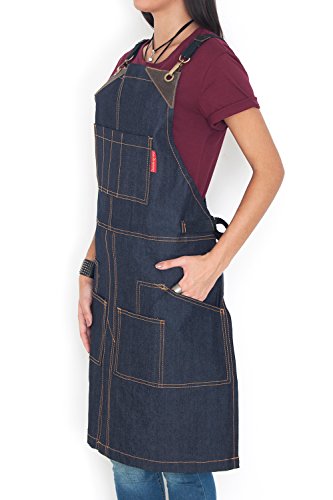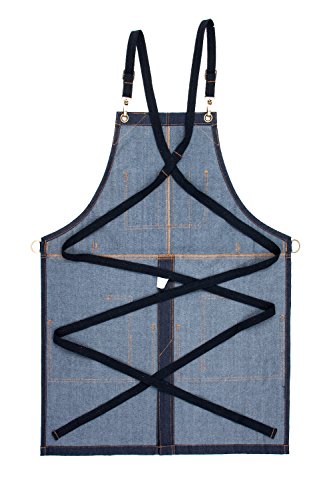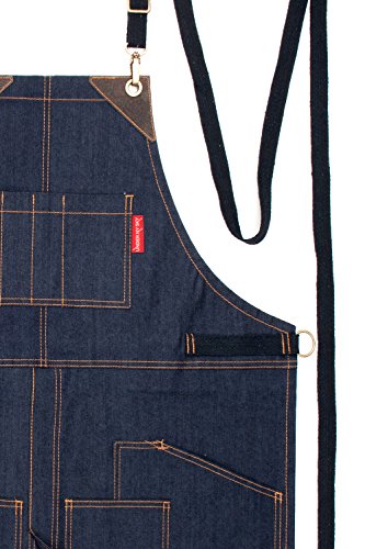 - CROSS-BACK CARGO WITH EXTRA POCKETS AND EXTRA STRETCH– This apron leaves your neck free of any pressure and it is made of durable mid-weight 10 oz denim with elastane. It comes with even more pockets to help you get your work done in an easier and more organized way.