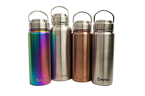 VACUUM INSULATED - The Omnia h2o Om water bottle is double walled and vacuum insulated. This technology will keep you drink cold for up to 24 hours or hot up to 8 hours. This wide mouth reusable bottle will never sweat.
