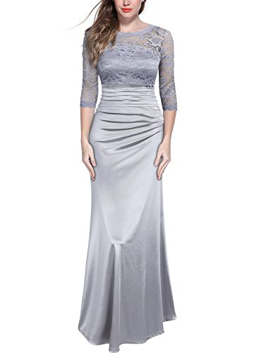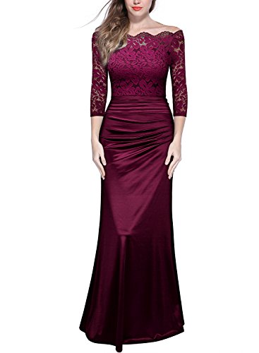 Women's Retro Off Shouler Floral Lace Ruched Bridesmaid Maxi Dress