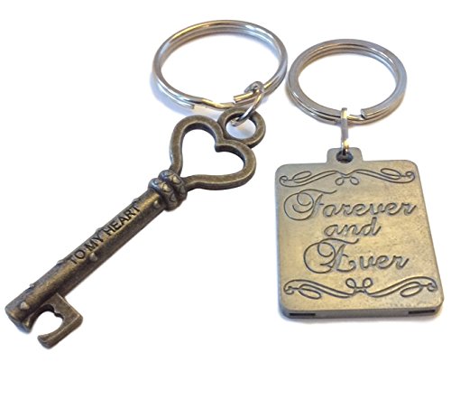 2 Pack Keychain and Keyring Set - Key to my Heart and Photo Keychain - Great Gift for Those You Love by Butler in the Home (Key to My Heart with "Forever and Ever" Photo Frame)