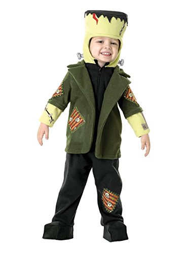 -. Binding : Toy -. Brand : Rubie's -. ClothingSize : One Size -. Color : Green -. Department : unisex-baby -. Feature : 100% Polyester / Green jacket with an attached grey shirt / Patches sewn on the jacket with light green arms on the sleeves / Frankenstein's head hood / Black pants with sewn on patches -. Label : Rubies -. Manufacturer : Rubies -. MPN : RU11953I -. PackageQuantity : 1 -. PartNumber : RU11953I -. ProductGroup : Apparel -. ProductTypeName : TOYS_AND_GAMES -. Publisher : Rubies -. Size : One Size -. Studio : Rubies -. Title : Little Frankenstein Kids Costume