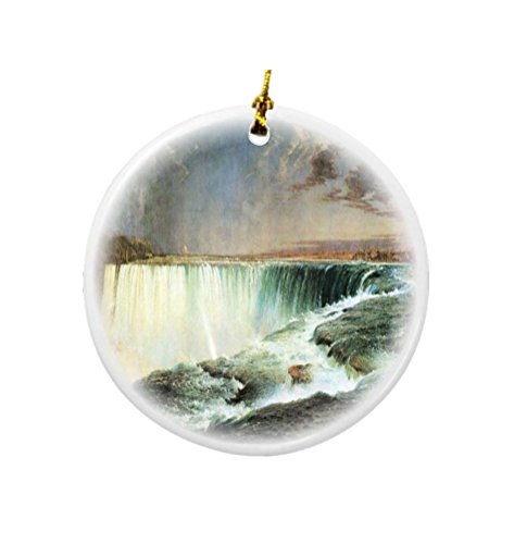 Rikki Knight Frederick Edwin Church Art Niagara Falls Design Round Porcelain Two-Sided Christmas Ornaments
