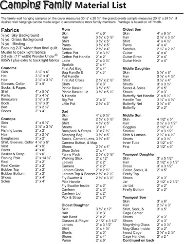 - Also Choose from Ten Different Family Member, Cat, Dog, Tent or Camper to Make Your Own Personal Wall Hanging (all included with pattern).