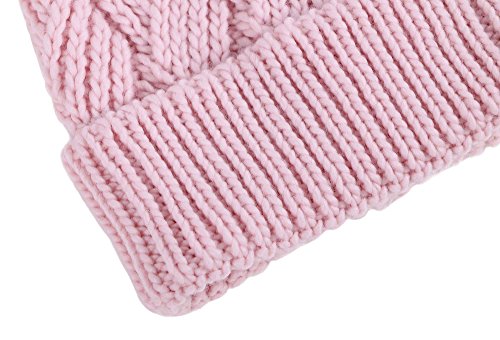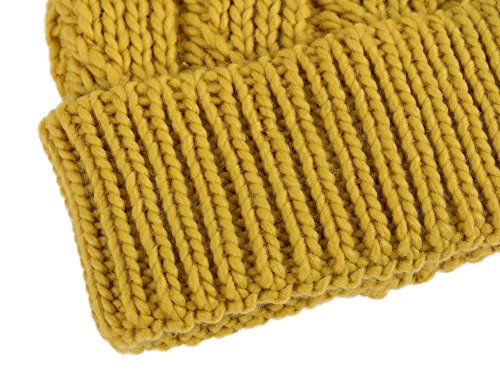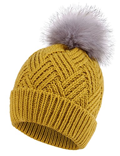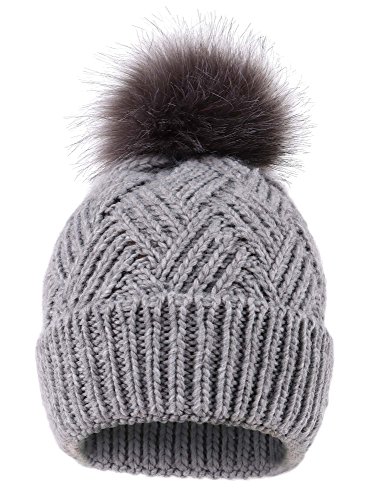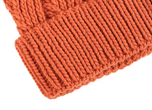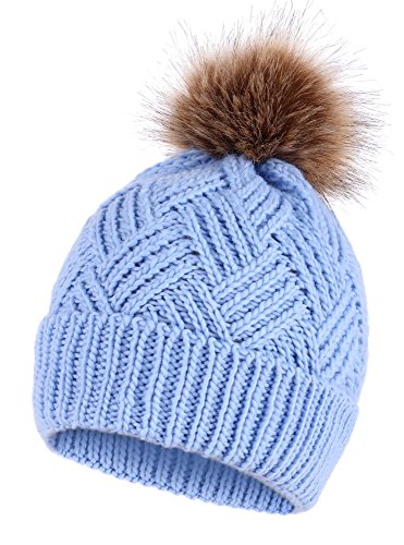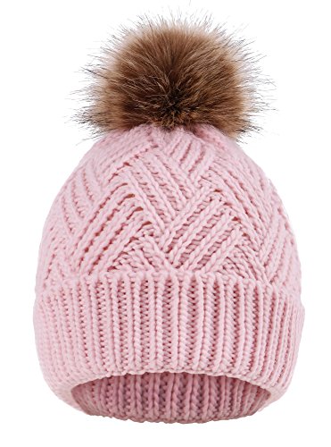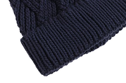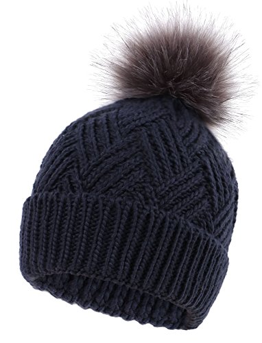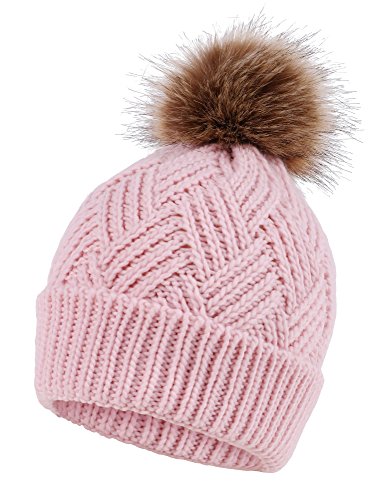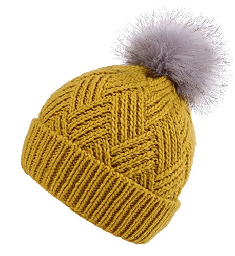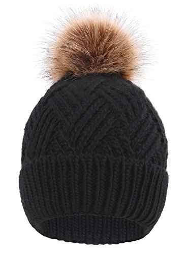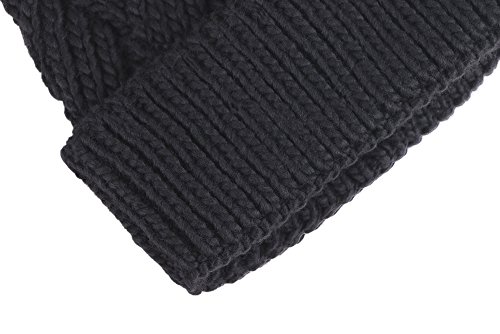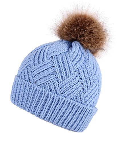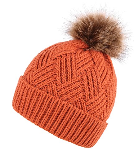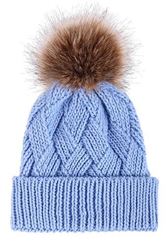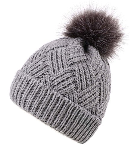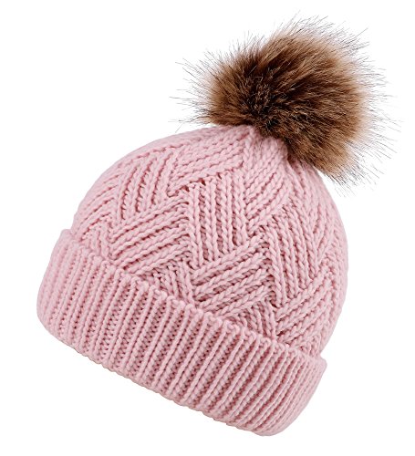This delightfully cozy knit beanie features a whimsical faux fur pompom at the top, and a beautiful patterned cable knit, making it an excellent choice for braving chilly winter weather. Made of a stretchy, breathable acrylic blend in an ultra thick, dual layered chunky knit for unbeatable comfort and a perfect fit. Covers the ears for extra protection, and includes a foldable cuff that can be adjusted as desired. 0