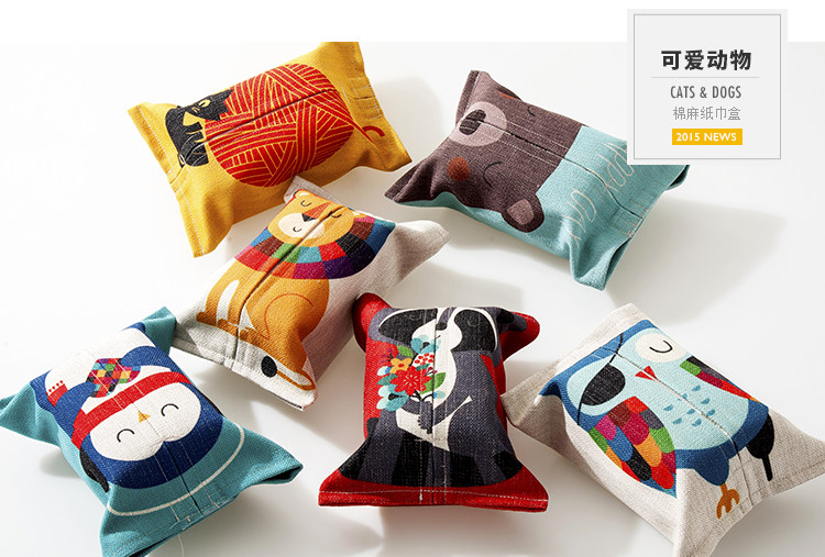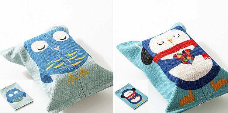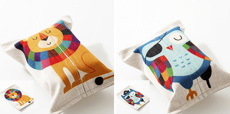S Cartoon Animal Tissue boxes Vintage Tissue Box Holder Rectangle Fabric Linen Cover Car Home Office Bathroom Decoration Cute