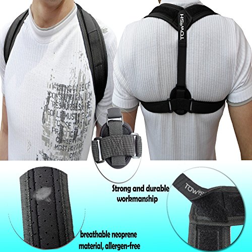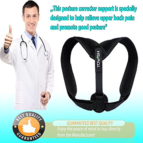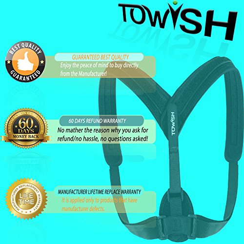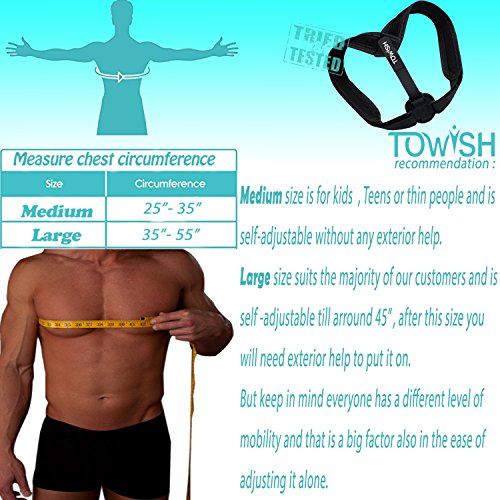 ?? PREVENTION IS BETTER THAN CURE Our sedentary lifestyle can take a toll on our posture, luckily, bad posture can be corrected over time by using support braces and posture correctors. TOWISH back posture corrector stands out proud from all posture correctors in the world today because unlike others it was designed to create a perfect aid to prevent and combat lots of medical problems like ??bad posture??clavicle fracture??Thoracic kyphosis??forward head carriage??slouching??hunchback??Osteoporosis pain??Misaligned spine ??sports injuries and generally, all affections where your physician prescribed a Figure 8 brace. ?Perfect Golf and bowling equipment and accesories! ?Affordable and comfortable to wear under or over clothes! ?Perfect for those who spend long hours at the office! ?Aligns your spine and shoulders upon first wearing it! ?Soft enough to be used on a daily basis, without cutting the armpits! ?Easy put on by yourself, dual strap design! ??WE GOT ALL FAMILLY COVERED?? - suits all sizes from teens and small children to their parents from 25" to 55" in chest circumference(after 45" You will need exterior help to put the brace on)