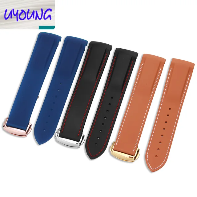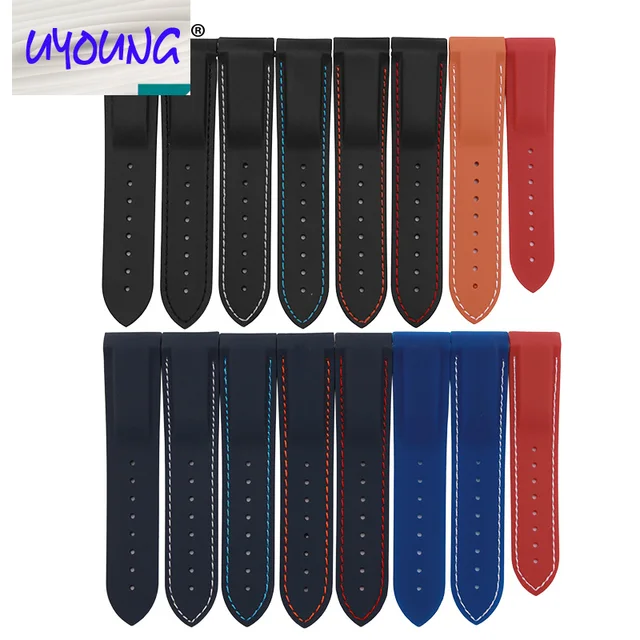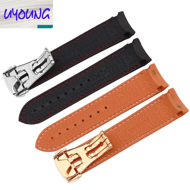 | [해외]UYONG 20mm22mm 새로운 블랙 다이버 구부러진 엔드 실리콘 고무 시계 스트랩 및 배포 버클 대한 OMG 스트랩 팔찌 |
