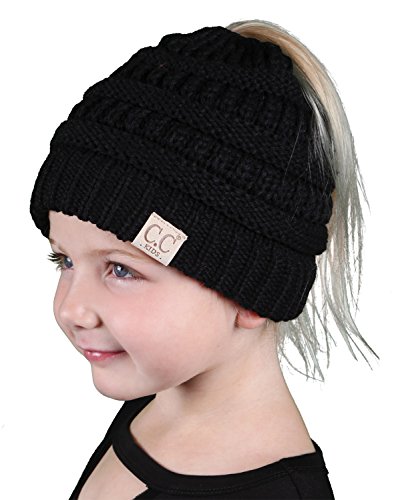 Binding : Apparel Product Description Does your cute kiddo love beanies but doesn't always love wearing her hair down? Our new BeanieTail beanies will be the perfect accessory for them. Our BeanieTail hats feature your favorite CC Kids Beanie that you know and love with an added hidden ponytail opening at the top to wear with a pony tail or messy bun. An elastic band lines the opening and stretches to fit perfectly to any hair style, no matter the hair type. So versatile, wear this beanie down around your head for a higher hairstyle, or back further, for a more slouchy, lower ponytail look. Can also be worn with hair down as a normal beanie. So cute and convenient, our kids BeanieTail, just like the women's version, is a prime example of fashion meeting with functionality. 0