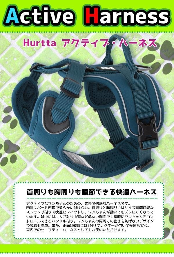 アクティブなワンちゃんのための、丈夫で快適なハーネスです。内側はパッド内蔵で柔らかい付け心地。首周りと胸周りにはサイズ調節可能なストラップ付きで快適にフィットし、ワンちゃんが動いてもズレにくくなっています。 |