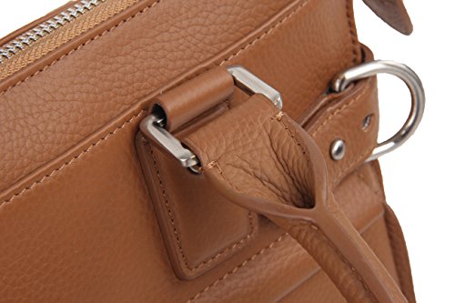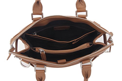 -. Feature : Made of full-grain cowhide genuine leather / 1 main zipper pocket, 1 compartment pocket with zipper / 1 pocket with velcro strip, 2 insertion slots, 1 big slip pocket / 1 hidden pocket with zipper, 1 front and back zipper pocket / 1 detachable shoulder strap, Dimensions:33*51*11cm