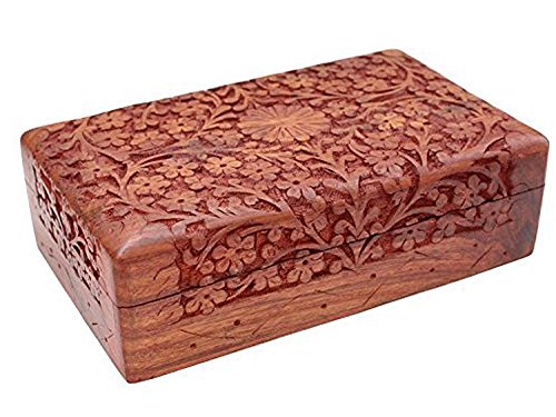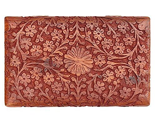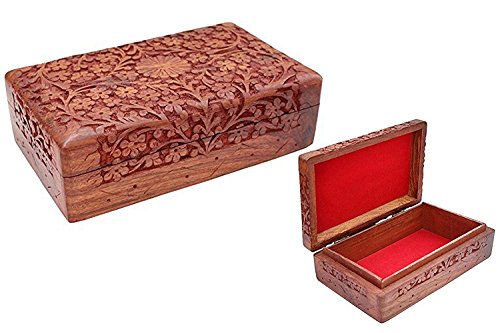 Christmas or Thanks Giving Day Gift, Handmade Wooden Carved Vintage Box Jewelry Box, Flower Carving Design, Brown Color Jewelry Box, Vintage Box, Keepsake Box, Jewelry Organizer Box - 8 X 5"