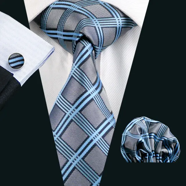 LS-400 뜨거운 넥타이 남자 격자 무늬 클래식 100% 실크 자카드 짠 넥타이 손수건 커프스 세트 남성 정장 웨딩 파티 무료 우표