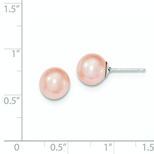 ICECARATS DESIGNER JEWELRY 925 STERLING SILVER 9MM PINK FRESHWATER CULTURED ROUND PEARL STUD BALL BUTTON STUD EARRINGS