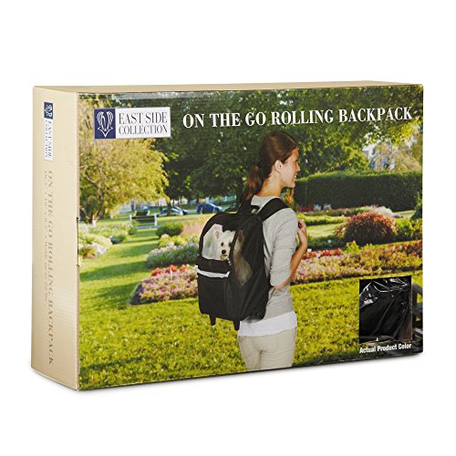 -. Binding : Misc. -. Brand : East Side Collection -. Color : Black -. Department : Pet Food & Supplies -. EAN : 0721343608523 -. Feature : Fashion, function, and comfort combine in these chic On-the-Go Rolling Backpack Pet Carriers / Features an interior collar clip for added safety and a removable berber mat for optimum comfort / Includes a rollback P.R.Ivacy flap and a pocket for convenient storage / Made of lage-quality fabric for unmatched durability / Self-locking zippers keep pets contained -. Label : PetEdge Dealer Services -. Manufacturer : PetEdge Dealer Services -. Model : ZA5257 17 -. MPN : ZA5257 17 -. NumberOfItems : 1 -. PackageQuantity : 1 -. PartNumber : ZA5257 17 -. ProductGroup : Pet Products -. ProductTypeName : PET_SUPPLIES -. Publisher : PetEdge Dealer Services -. Size : Not Applicable -. Studio : PetEdge Dealer Services -. Title : East Side Collection On-the-Go Rolling Backpacks - Convenient and Versatile Carriers for Small Dogs and Cats, Black -. UPC : 721343608523