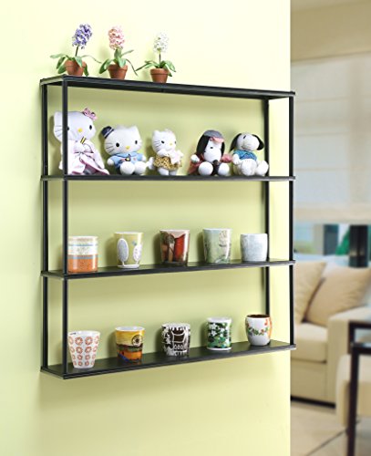 Wall-Mounted Steel Shelving Unit - 36" H x 36" W x 6" D - Black - for kitchen, storage, or display use.