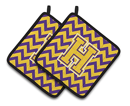 Caroline's Treasures Letter H Chevron Purple & Gold Pair of Pot Holders CJ1041-HPTHD, 7.5HX7.5W, Multicolor