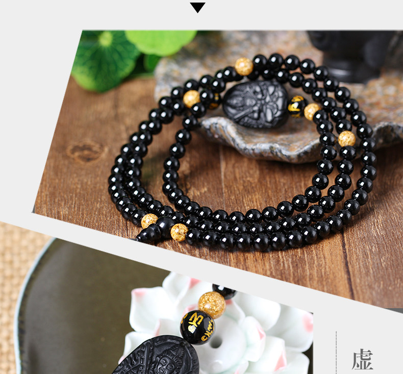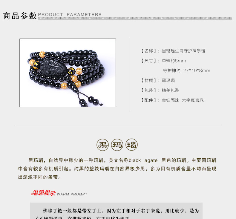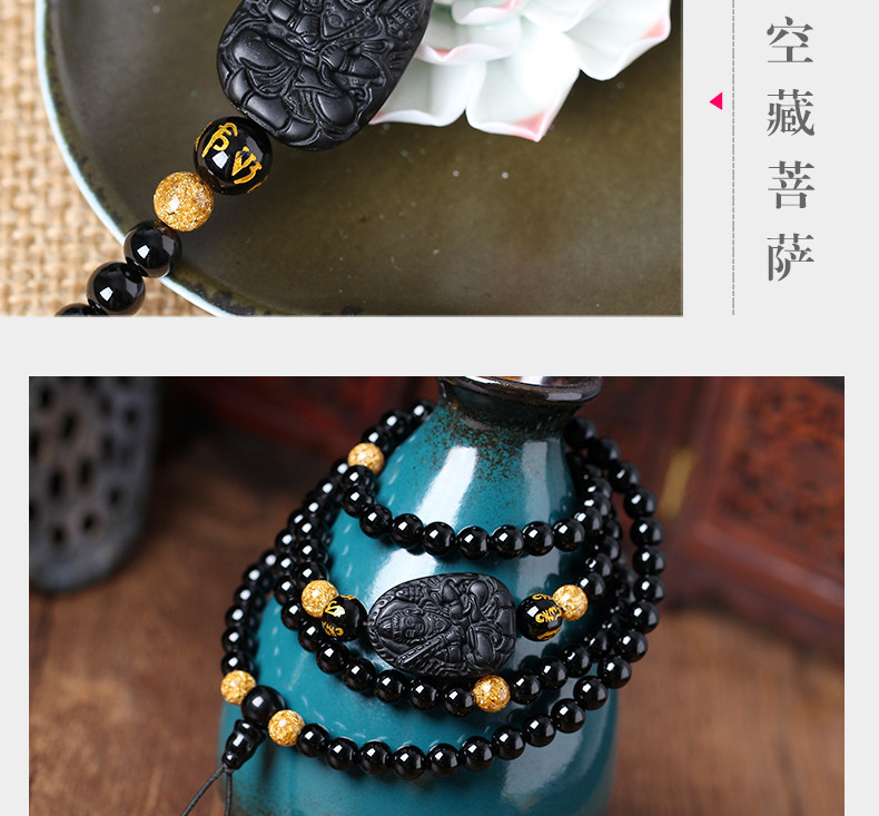 天然黑玛瑙黑曜石虚空藏菩萨王十二生肖牛虎守护神本命佛佛珠手链
