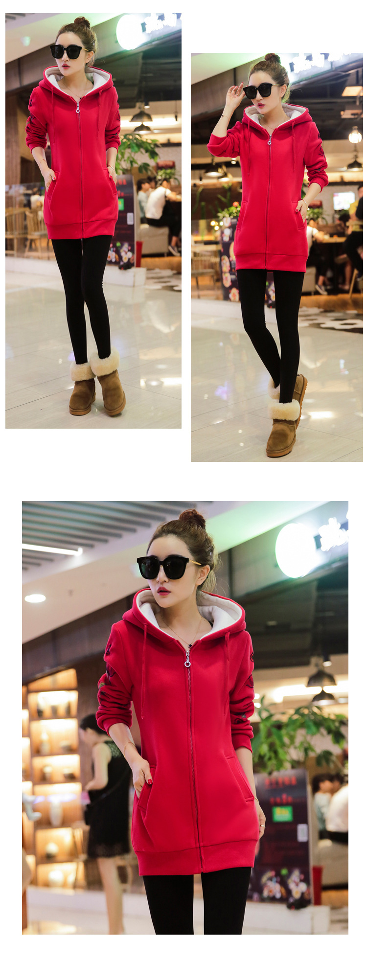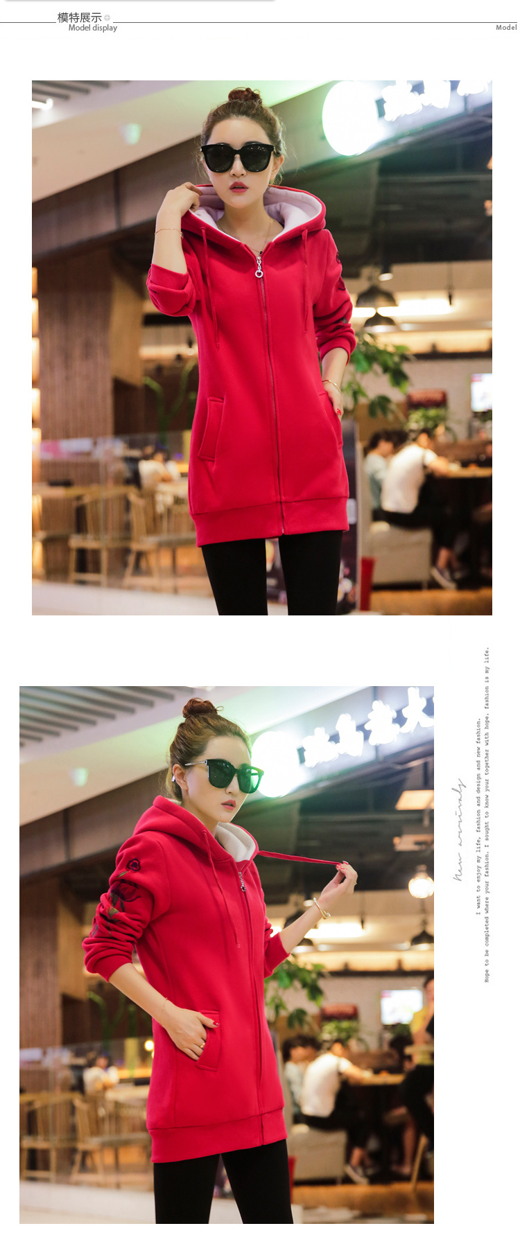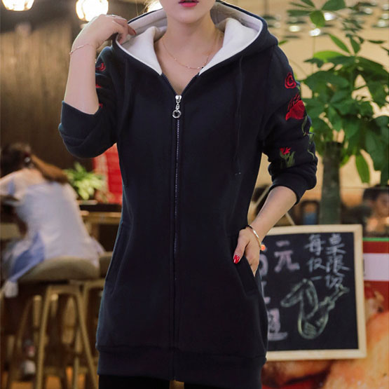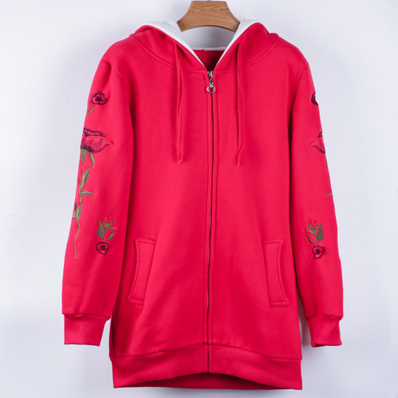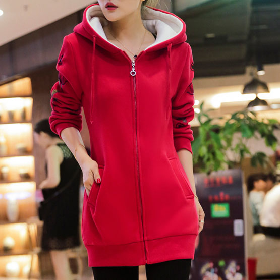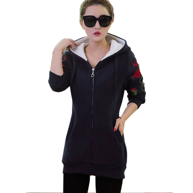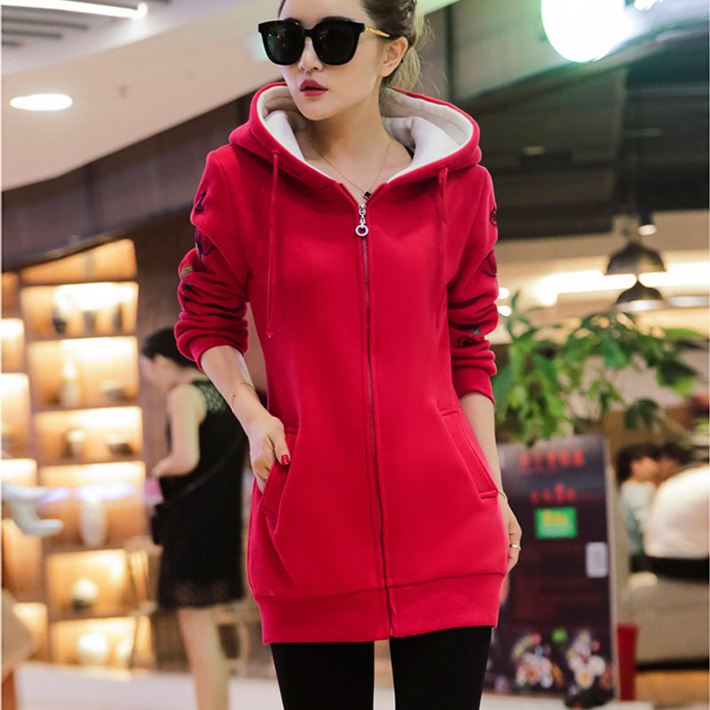 2016 New Women Long Sweatshirts Red Dark Blue Color Hooded Jacket Long Sleeve Women\ s Hoodie Zipper Fall Winter Women Warm Coat