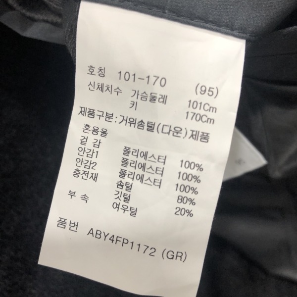 구스다운 폭스퍼 사파리 패딩 ABY4FP1172 GR구스다운 깃털20% 솜털 80% 보온성이 우수합니다