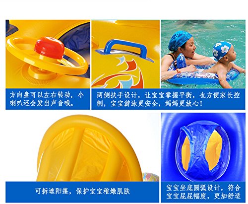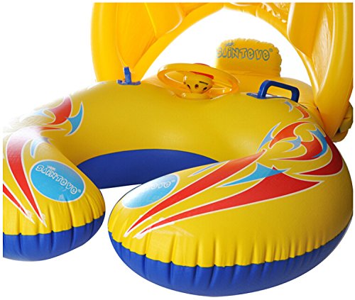 원본상품명: Mai Poetry 2人?り子供用浮輪。 ハンドル、屋根付き タンデムボ?ト 付?品セット (イエロ?)