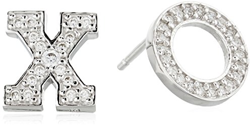 Rhodium Plated Sterling Silver Individual "X" and "O" Cubic Zirconia Stud Earrings