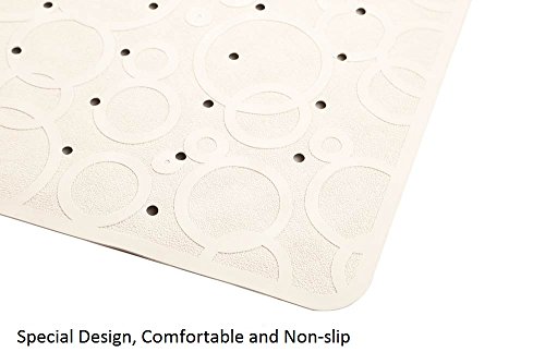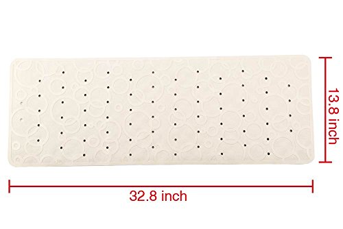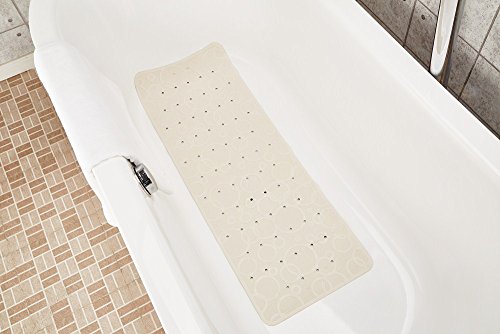 Moon Castle Anti-Slip Extra Long Rubber Bath Mat L 38” x W 14”, Mold & Mildew Resistant , Machine Washable, Soft and Durable (Cream)