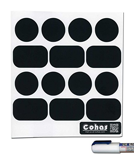 Cohas Chalkboard Labels for Grant Howard 3 to 3.4 Ounce Spice Jars includes Liquid Chalk Marker and 42 Labels, Extra Fine Tip, White Marker
