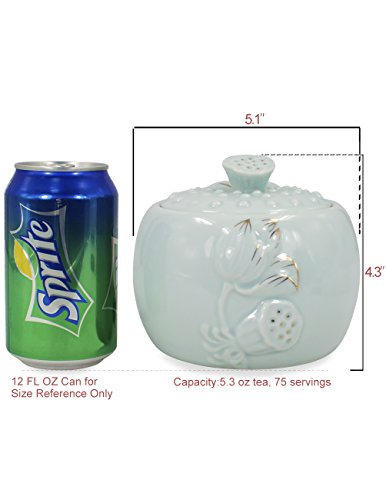 Dahlia Embossed Lotus Glazed Celadon Handcrafted Porcelain Tea Storage/ Tea Caddy/ Tea Canister