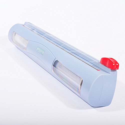Plastic Wrap Dispenser with Slide Cutter ,Refillable Food Wrap dispenser, Coming with a 100 SQ Cling Wrap FDA Approved by BOXTHINK (Blue)