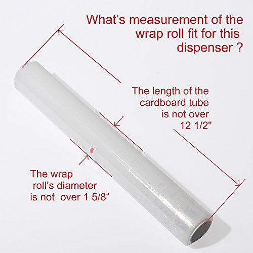 Applicable food wrap's size for dispenser :200/150/100 SQ FT, the length of wrap's cardboard tube is not over 12 1/2"
