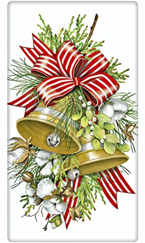 Golden Christmas Bells 100% Cotton Flour Sack Dish Tea Towel - Mary Lake Thompson 30" x 30"