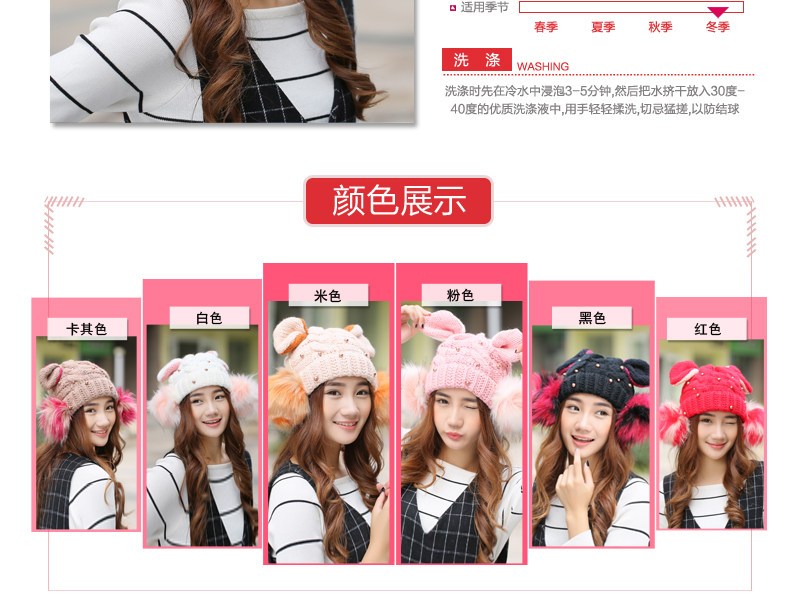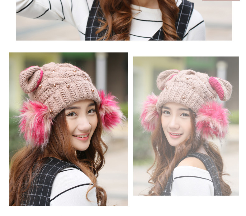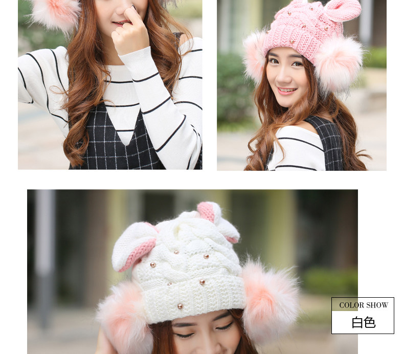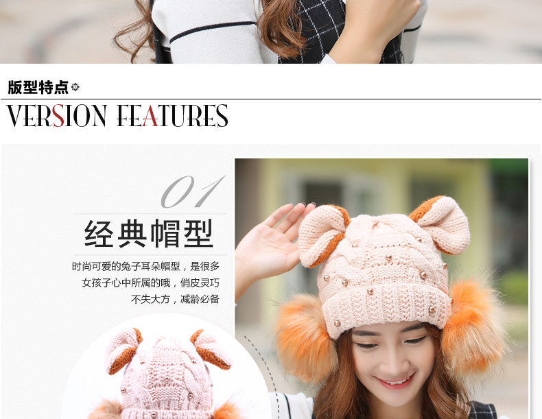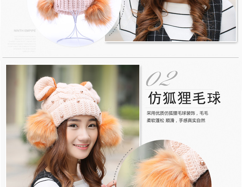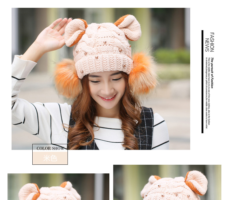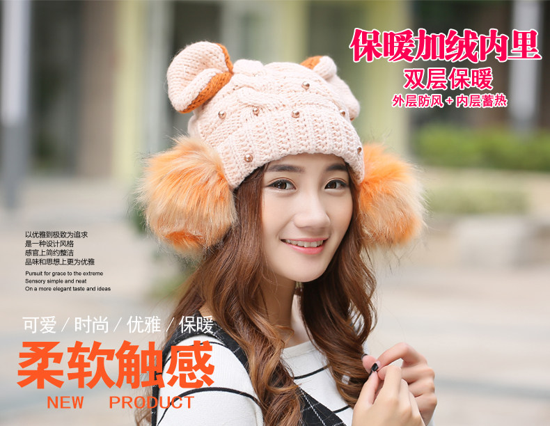 韩国可爱女生猫耳朵帽子女冬天恶魔角保暖针织帽韩版大球球毛线帽